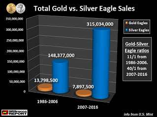 What is the better investment? Silver or Gold? Well, if we look at the following two charts below, we can spot some interesting trends. The U.S. Mint has been producing Gold and Silver Eagles for over thirty years now. Since 1986, the U.S. Mint has sold 21.7 million Gold…