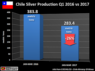 According to the most recently released data from Chile’s Ministry of Mining, the country’s silver production declined a stunning 26% in the first quarter of 2017. This is a big deal as Chile is the fourth largest silver producing country in the world. The majority of Chile’s silver production comes…