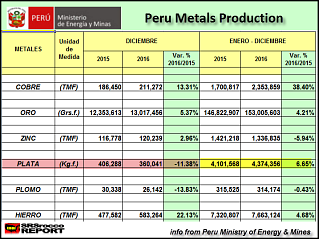 While Peru’s silver production surged in the beginning of 2016, it experienced a double-digit decline in December versus the same month last year.  Peru is the second largest silver producing country in the world, trailing Mexico by approximately 40 million oz, but now leading third-ranked China by a wide margin….