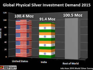 According to the figures in the 2016 World Silver Survey, Americans now lead the world in physical silver investment. This is quite an interesting change as India has been the number one market for silver bar demand in the past. For example, Indians purchased more than 100 million oz (Moz)…