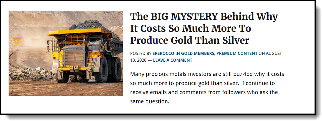 For example, we used Barrick Gold and Pan American Silver in the detailed analysis below to show why it costs so much more to produce gold than it does to produce silver.