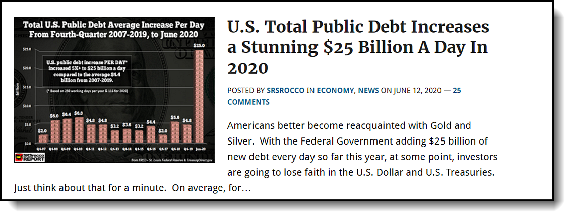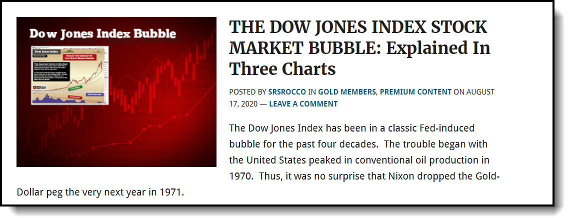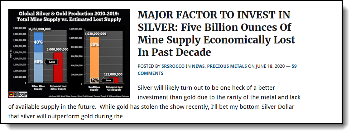 Here are some examples of the main topic posts found on the SRSrocco Report front page that will be available to all Silver and Gold & Corporate Members.