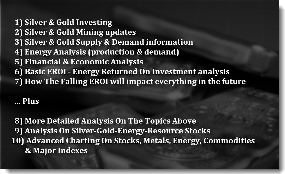 Corporate Members will also receive detailed analysis of the main topics (1-7), including “My Type of Analysis” on Silver-Gold-Energy Resource Stocks and Advanced Charting on Stocks, Metals, Energy, Commodities & the Major Indexes found in the SRSrocco Gold Members Area: