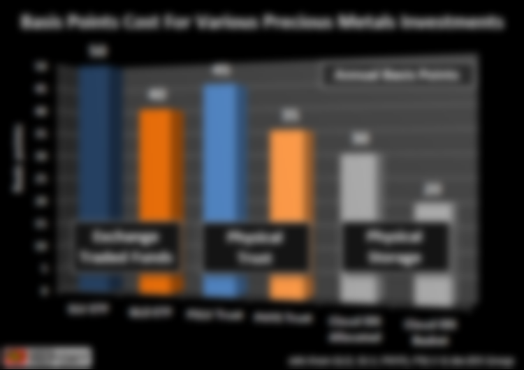 Through its relationship with the IDS Group, Cloud Hard Assets offers its clients the most cost-effective storage rates in the industry, ranging from 20 to 30 basis points annually. Please note that CHAS involves the purchase and storage of actual precious metals with size and type of product determined by each individual purchaser. To gain exposure in the precious metals market, investors can participate in alternative investment vehicles such as the SPDR Gold Shares ETF (GLD) and iShares Silver Trust (SLV). These exchange-traded funds charge an annual fee to service the funds operations. Interestingly, they are significantly higher than the physical storage fees CHAS charges.