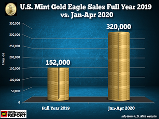 Gold Eagle sales surged in March and April as investor concerns of the global contagion spread to the United States. Demand for Gold Eagles in February fell to only 7,000 oz but surged to a record monthly high in March. The U.S. Mint sold 151,000 oz of Gold Eagles in…