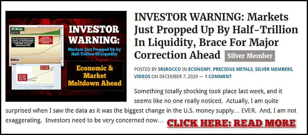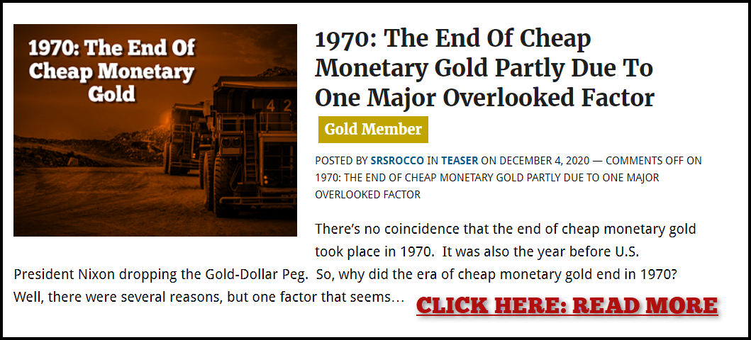 DISCLAIMER: SRSrocco Report provides intelligent, well-researched information to those with interest in the economy and asset values. Neither SRSrocco Report nor any of its owners, officers, directors, employees, subsidiaries, affiliates, licensors, service and content providers, producers or agents provide financial advisement services. Neither do we work miracles. We provide our content and opinions to readers only so that they may make informed decisions on all types of assets. Under no circumstances should you interpret opinions which SRSrocco Report or Steve St. Angelo offers on this or any other website as financial advice.