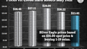 What’s interesting about Silver Eagles, even though the quality of .999 silver is less than its closest competitor, the Canadian Silver Maple coin at .9999 silver, the premium is higher.  Silver Eagle premiums can run $1+ more than a Canadian Silver Maple.  But, for whatever reason, Americans continue to buy a lot more Silver Eagles than Silver Maples.