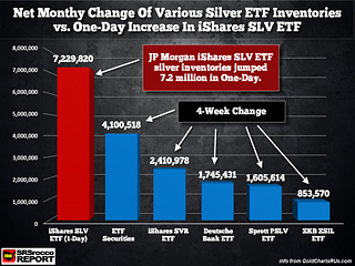 Why did the iShares SLV ETF add so much silver to its inventories yesterday when the price of silver sold off? The iShares SLV ETF added more silver in one day than the combined 4-week net change of several of the other leading Silver ETFs. Also, why has Sprott’s PSLV ETF valued declined compared to the silver price…