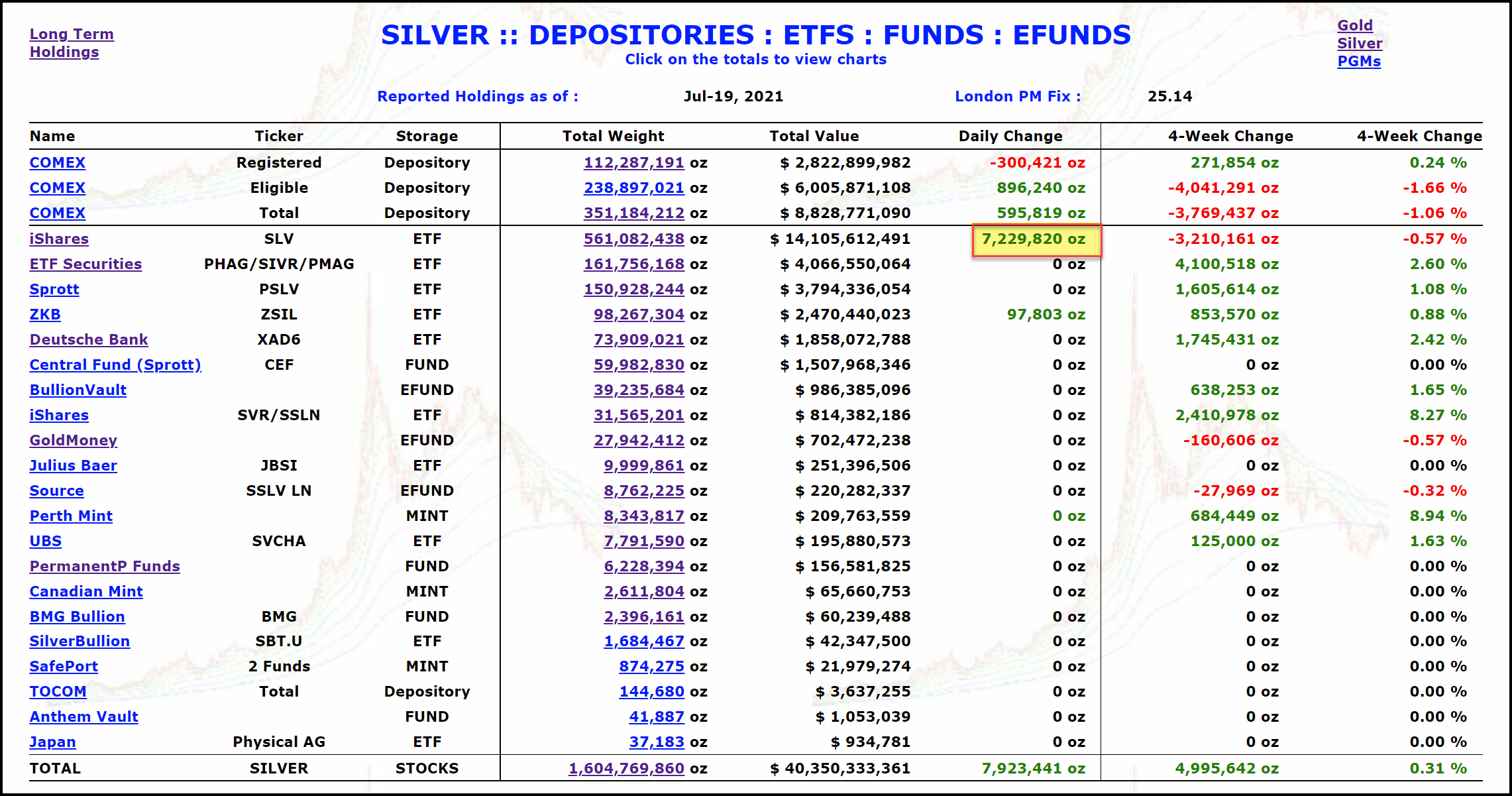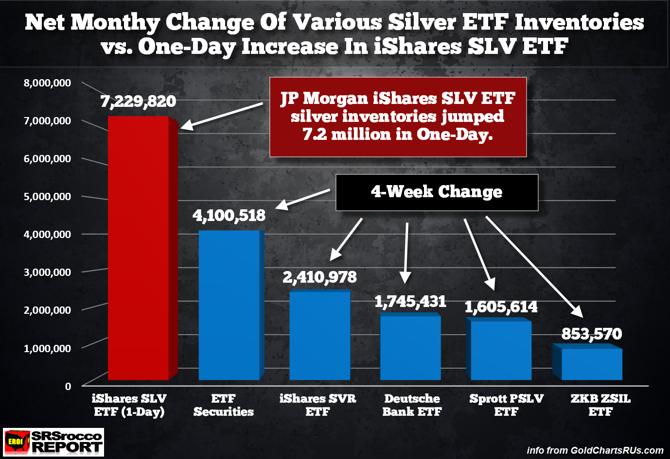 SLV ETF Adds Stunning 7.2 Million Oz Of Silver To Its Inventories in ONE-DAY