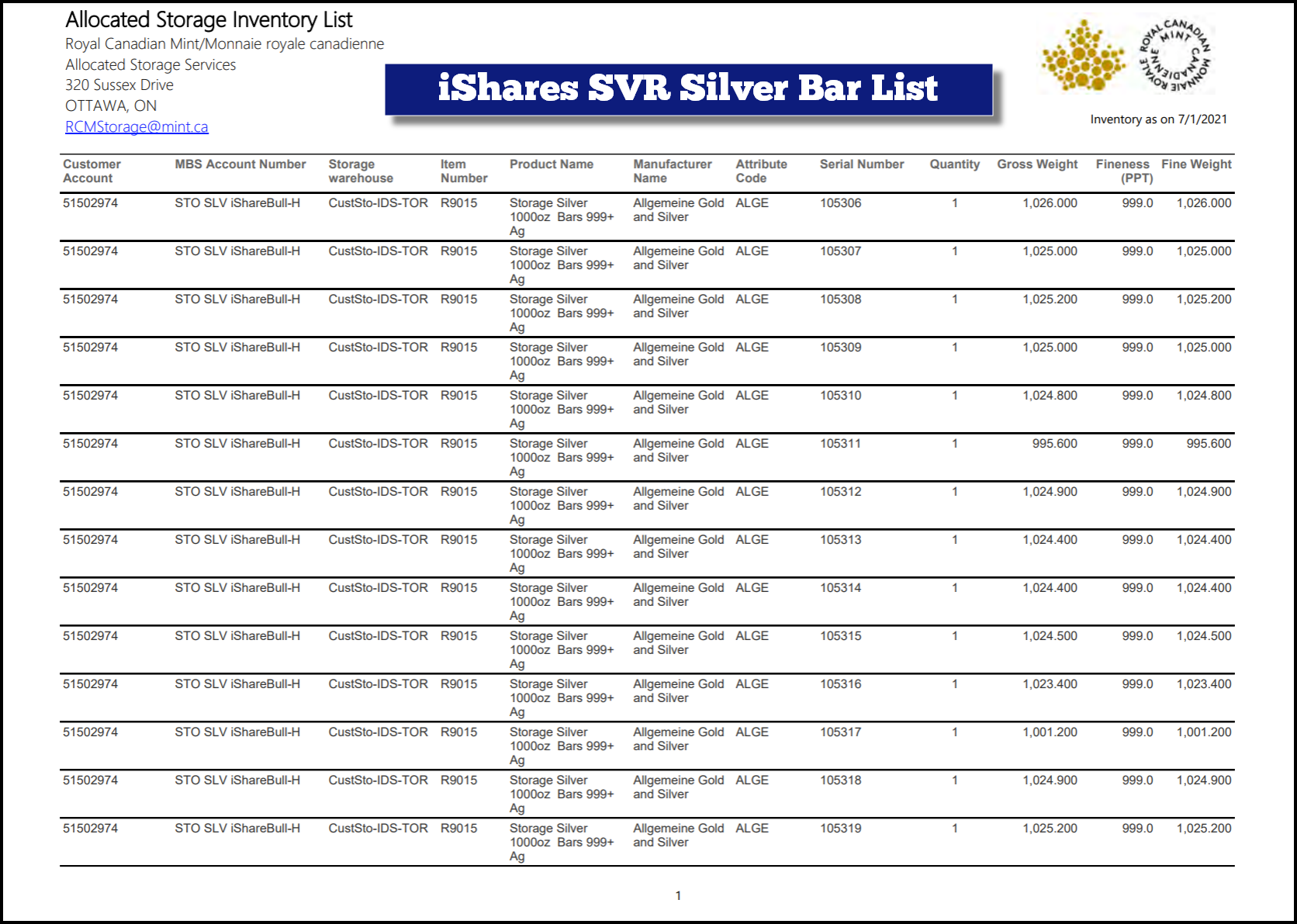 So, if you thought Sprott’s PSLV ETF was the only one with high-quality allocated storage at the Royal Canadian Mint… I give you the iSHARES SVR ETF.