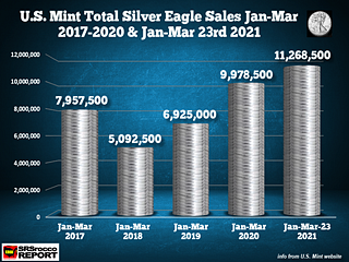 During the first three months of the year, Gold and Silver Eagle sales reached new highs as investors, concerned about the U.S. Government’s massive stimulus and debt increases, purchased record numbers of the official coins.  Already, sales of Silver Eagles surpassed last year’s figures for the same period, and there…